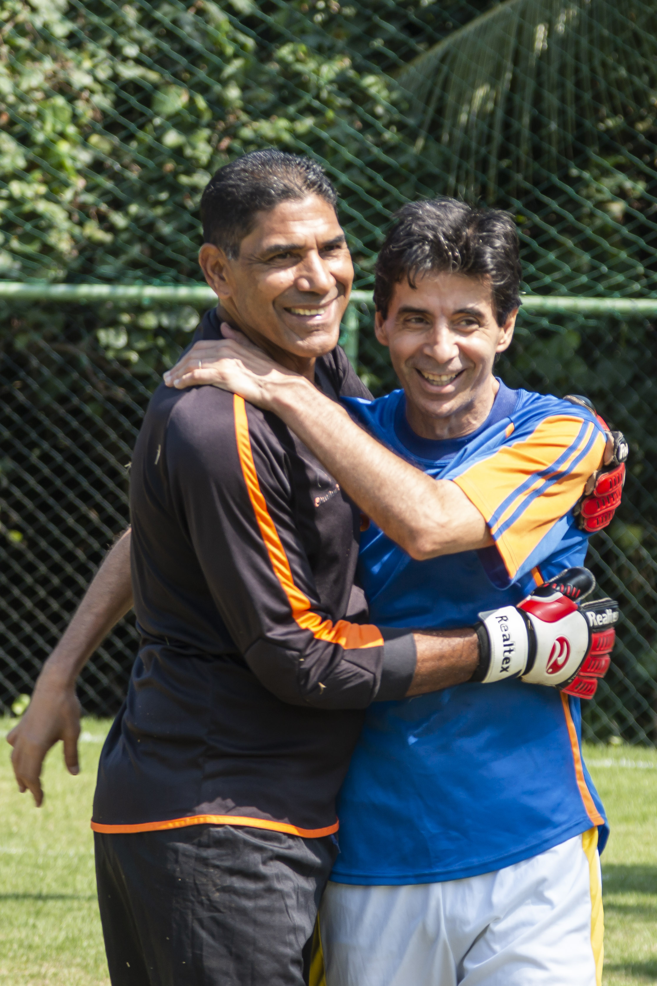 Passadas algumas horas do começo da festa começa a pelada e o timaço está em campo! Algumas constatações: Gaúcho joga com muita categoria e a cabeça sempre erguida, Sorato mantém uma boa movimentação. Mauro Galvão manteve a promessa é virou atacante. Não me lembro de ver ele proteger a própria meta em nenhum momento. Mas o que mais chamou atenção foi ver Acácio desafiando os atacantes a chutar no gol. Ali ele abriu um leque de lindas defesas. Não sei se ele fazia assim quando profissional, mas pareceu um efeito muito intimidador.