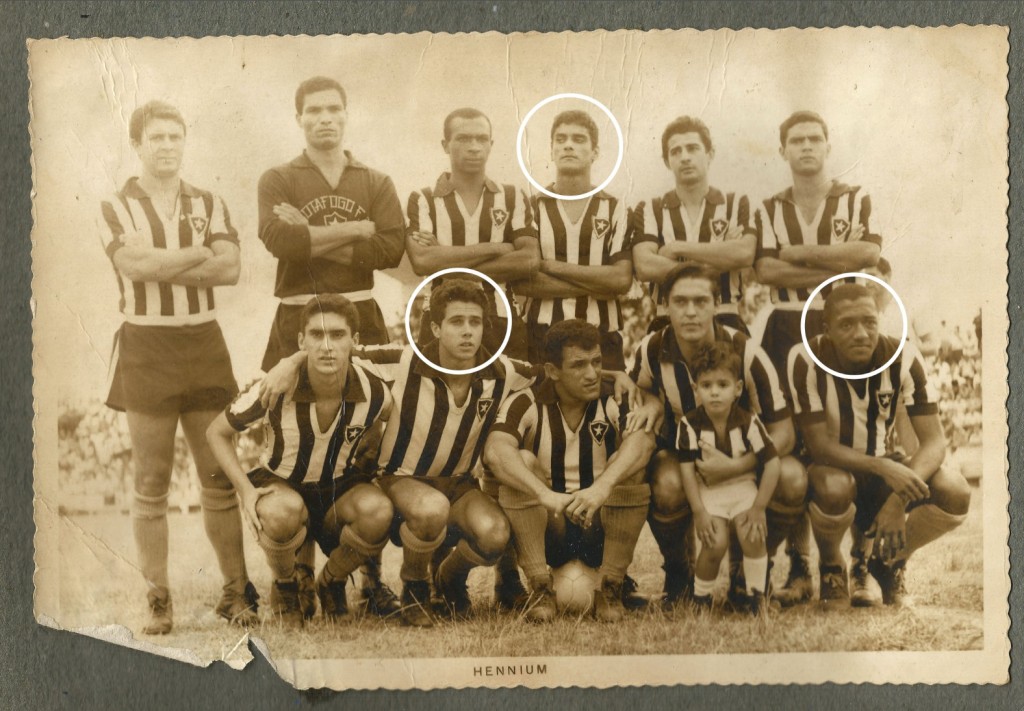 Time do Botafogo durante excursão ao RS em 1968 com o trio Nei (de pé), Afonso e Caju (agachados) [acervo Maura Moreira]