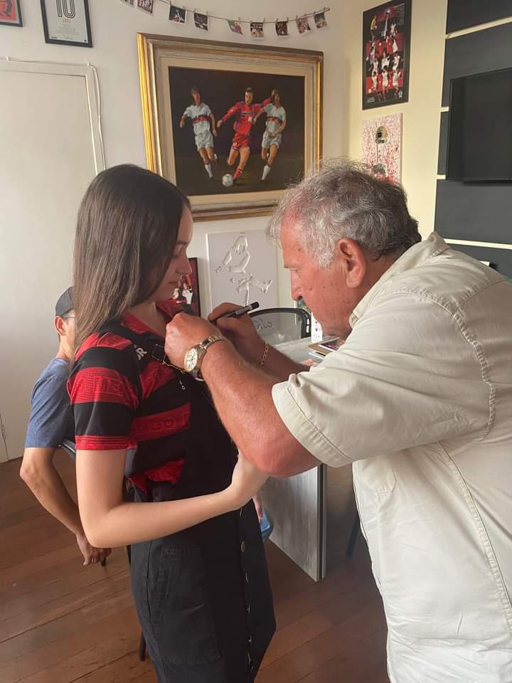 São gerações e gerações que costumam dar uma passada lá para tirar fotos, pedir autógrafo e, lógico, desfrutar de minutinhos que parecem eternidade para quem não viu Zico jogar, mas não cansa de ouvir histórias do maior jogador da história do Flamengo. Uma destas foi Gabrielle Silva Cabral, minha filha de 17 anos. Surpresa, me contou: “Pai, Zico nem parece Zico!”, comentou ao chegar em casa vindo do CFZ naquela noite de uma quarta-feira de janeiro inesquecível para ela. Além da minha filha que esperou ansiosa para conhecer o senhor Arthur Antunes Coimbra, eu e mais cinco pessoas da Assembleia de Deus Betel, de São Gonçalo, estivemos presentes na ocasião, levando uma camisa para o imortal camisa 10 do Flamengo autografar em uma campanha que ele, o próprio Zico, abençoou. Do contrário, a realização do Retiro dos Jovens, no começo de fevereiro seria difícil. O embarque dos jovens será na sexta-feira (9), às 18h.