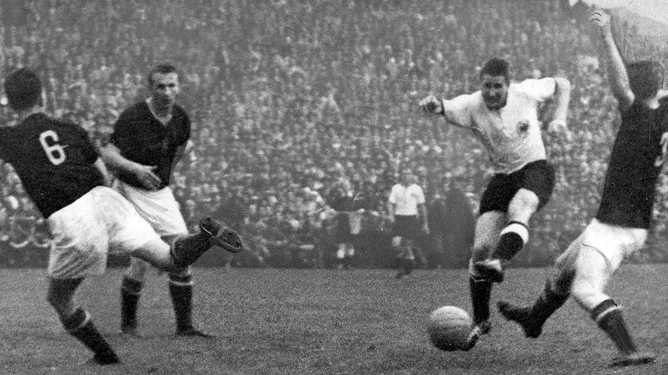 A barbada ainda aumentou quando com menos de dez minutos de jogo os húngaros já venciam os germânicos por 2 a 0. Mas aí aquela seleção fenomenal, como que num encanto de Cinderela virou abóbora! O campo de Berna encharcou! As travas maiores das chuteiras alemãs permitiam aos mesmos ficarem mais em pé em campo do que os húngaros, e antes do fim do primeiro tempo o jogo que parecia que ia ser mais uma goleada estava empatado! Faltando seis minutos para o fim do jogo, Helmut Rahn virava o jogo para os alemães! Era o fim de uma era da maior seleção da história do leste europeu! Puskas ainda marcou um gol de empate, mas corretamente anulado pelo bandeirinha!