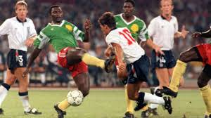 Camarões era a primeira seleção africana a chegar a uma quarta de final de um mundial, e aí chegava para enfrentar a forte, mas de cintura dura seleção inglesa, que desde seu título em 1966 (24 anos antes!) não chegava sequer a uma semifinal de Copa. Foi um massacre camaronês durante todo o jogo! Mesmo saindo atrás no placar os africanos empataram e logo viraram e aí cansaram de perder gols cara a cara com o goleiro Peter Shilton! Parecia que Camarões iria vencer o jogo a qualquer momento por mais gols! Só parecia…