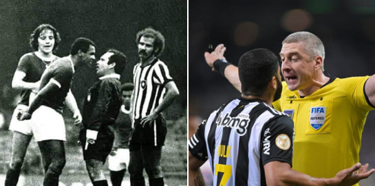 Na foto, anos 70, do futebol e arbitragem arte, Luiz Pereira vai pra cima do árbitro Agomar Martins. Leivinha pede calma e Brito reclama do meio-campo que não voltou pra marcação.