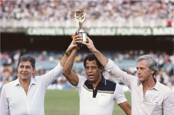 Mauro (62), Carlos Alberto Torres (70) e Bellini (58) trazem a taça de volta para casa. Foto: David Canon