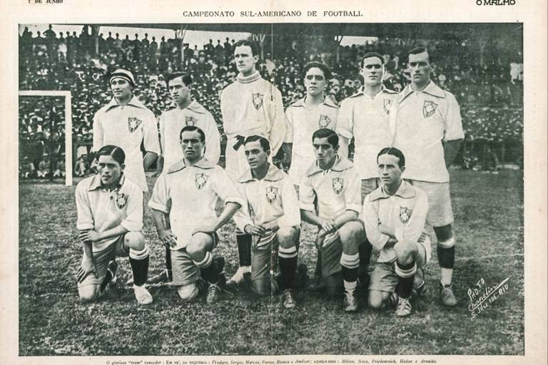 “Tudo por São Paulo num Brasil unido!”. Com esse clamor, em julho de 1932, fartamente publicado pela imprensa paulista da época, o maior ídolo do futebol de seu tempo, Arthur Friedenreich, convocava seus conterrâneos a aderirem à causa Constitucionalista de São Paulo. No dia 9 de julho, em que é lembrada a deflagração da Revolução dos paulistas, publicamos aqui trechos da biografia de Friedenreich que integra o primeiro volume de “Ídolos & Épocas: O amadorismo no futebol brasileiro (1900 a 1933)”, recentemente lançado pela Approach Editora, com selo do Museu da Pelada: “A igreja na qual foi batizado também denotava algo profético na vida de Friedenreich, que na pia batismal da Igreja de Santa Efigênia, a padroeira dos militares, foi abençoado. A proteção do “afilhado” estava garantida, sobretudo quando teria de se deparar com os sangrentos fronts da Revolução Constitucionalista de 1932. (…) Com Friedenreich, o São Paulo conquistou o campeonato paulista de 1931, com um elenco conhecido como “esquadrão de aço” formado por Nestor; Clodô e Bartô; Mílton, Bino e Fabio; Luizinho, Siriri, Araken Patusca, Friedenreich e Junqueirinha. No ano seguinte ao título do novo clube paulista, estourou a Revolução Constitucionalista de São Paulo contra o governo ditatorial de Getúlio Vargas. Friedenreich engajou-se na luta pela independência do estado, doando troféus, medalhas e prêmios em benefício da causa. Alistou-se e logo foi alçado à patente de sargento. Comandou uma tropa de 800 soldados esportistas, que ocupou as trincheiras de Eleutério. Um rapaz foi atingido na nuca por uma bala dos soldados governistas de Vargas. O jovem morreu nos braços de Friedenreich. Três meses após a revolta dos paulistas, El Tigre retornou a São Paulo, como tenente, mas nunca mais se recuperou do trauma pela morte do rapaz. Joanna Welker Friedenreich, a dona “Ninita”, companheira de Fried durante 57 anos, esposa de Fried, recordou detalhes do front contados a ela pelo tenente “Tigre”: “Os mineiros, ao verem o pelotão se aproximar, gritaram — ‘Cadê El Tigre, queremos matá-lo’. Ele apareceu, provocando tiros, distraindo os mineiros. Enquanto isso, metade do pelotão subia por trás e conquistava o morro.” (…) Em 1970, durante entrevista ao repórter Paulo Mattiussi, dona Joanna declarou: “Na Revolução [Constitucionalista] de 32, ele foi como sargento, voltou como tenente e herói. Comandava o pelotão dos esportistas e subiu um morro debaixo de tiros para tomar a posição.”