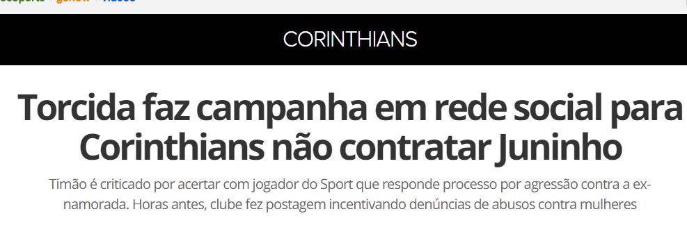 Vimos recentemente um episódio que até poderia alimentar a esperança de que o quadro descrito acima estaria mudando. Refiro-me à desistência da contratação de um jogador por parte do Corinthians devido ao fato de ele supostamente ter agredido sua ex-namorada. Vale lembrar que o clube tinha encampado no Dia Internacional da Mulher – 8 de março – uma campanha chamada “respeita as mina” que tinha como intuito combater a violência contra as mulheres. A desistência da contratação certamente trouxe coerência à campanha, cabe, contudo, o questionamento quanto ao que levou à “não contratação”. Foi a campanha do clube ou a repercussão negativa que ficou nítida nas redes sociais?