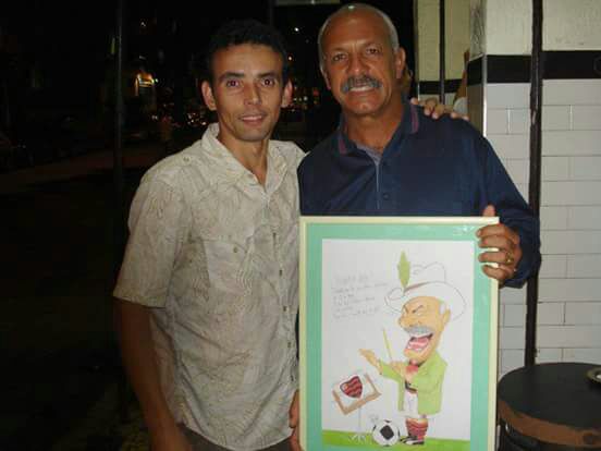 Conversamos por aproximadamente uma hora e a partir de então, comecei a fazer as caricaturas de seus aniversários – que na maioria das vezes é comemorado em seu projeto social Samba dá Sopa – e nas datas de fim de ano.